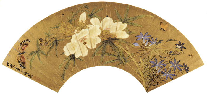 《花卉草虫扇面》