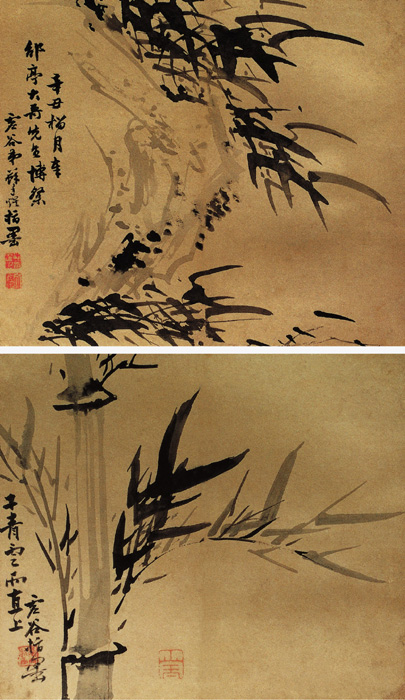 此《竹册》就技法而言,是属于小写意一系。虚谷在绘竹时,布局疏宕简洁,善于删繁就简,汰除不必要的繁缛细节,突出主体。而且构思奇警,有着单纯疏朗的境界美。可以看出,虚谷融入了华喦的疏朗松秀,金农的古拙厚实,程邃的苍劲干涩,呈现出灵动和清俊的双重变奏,开一代新风。画中竹叶沉甸甸地垂挂着,竹叶纷披,湿气淋漓。