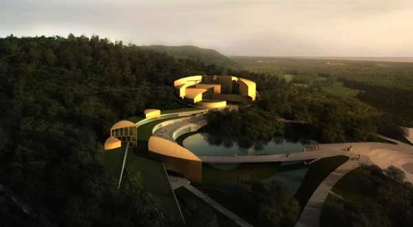 建筑选址以“建筑修补山体”为理念,巧妙利用场地废弃的采石场山体缺口布置建筑主体,最大程度的减小了建筑对现状自然环境的侵扰。同时,竖向展开的博物馆布局也在一个较高的地形上突出了建筑布局与阖闾城遗址的空间与视线联系。建筑空间序列顺应山势,精心组织穿越建筑屋顶的公众登山流线,有效整合了场地现有的景观和历史文化遗存,为城市公共活动提供了重要场所。建筑外形以一个有着生命寓意的破裂蛋壳来寓意阖闾城遗址重见天日所获得的永久新生。该项目正在施工中,预计2011年底竣工。