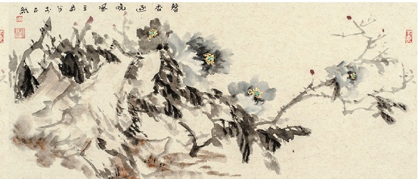 从李世民冲天豪举的王霸气象,到王维信手拈来的清韵禅机,以至国色天香壮丽山水,把独尊千古的民族文化风范淋漓尽致地洇染出来,把雄视四海的天地柔情升华为造化天成的沧桑境界,肺腑由衷,慷慨情怀,也正是王奇先生笔精墨饱的得其所哉。娇朵嫩蕊的流丽烂漫,枝繁叶茂的婆娑翩跹,精心细密的调和配搭,隽永,清新,凌然出境,也正是一花一世界,一叶一如来的美妙抵达。却又以蹀躞翩翩的蝴蝶逗引着沧桑的灵机,汗漫的物化,蕴藉着诗意盎然的齐整韵律,和精致氛围的深刻哲理。