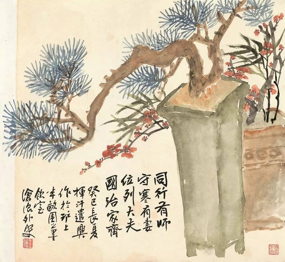 王茝孙与王一亭皆潜心弘扬国画,均系海上大写意流派,书法苍劲雄浑,花卉阔笔写意,禽鸟生动自然,人物大气灵动,山水磅礴凝练,设色明丽雅逸。二人常切磋论艺,亦师亦友,渐成莫逆之交。后经题襟馆金石书画会诸活动,又拜识近代海派宗师吴昌硕,结为忘年之交。金石书画功底及诗书画印四艺合体日益精进,并积极参与沪上书画界有关组织如海上联合书画会、中日艺术同志会、中日美术协会等活动,广学博采,又常在虹口六三花园和南市梓园(王一亭私寓)处欢聚一众画友,挥毫泼墨,吟诗唱和,联画遣兴,堪称沪上画坛群英雅集。缘此,与上海书画界才子名流,如丰子恺、张善孖、张大千、钱瘦铁、李瑞清、吴东迈、王个簃等多有往来,广结墨缘。