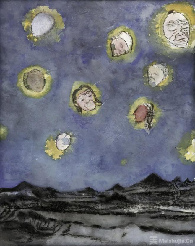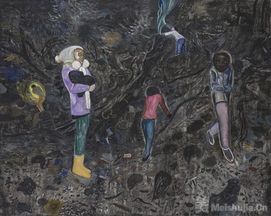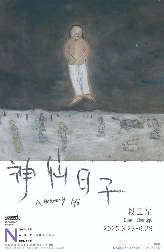 因为有农村的成长经历,段正渠了解大地如何孕育万物:他知道四季如何形成生命,土地如何沉淀出文化。这种感受超过了片段的日常景观,进入大地更深层的精神面貌里。也许因此,段正渠的画里不仅有人与动物,也有地下的历史遗迹和游荡天上的神灵,他从纷杂的现实里出走,让自己的绘画变得悠远。在他的画中,人物经常以平直的方式出现在黑夜或雪地里,去除了具体的情节叙事之后,万物更像是在其中获得了存在的位置。这是段正渠十年来不断探索、琢磨绘画语言的结果,他的画里有土地的气息,这让他所表达的精神性变得更加广阔。