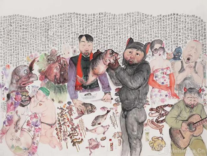 本次展览将通过五个单元来系统的梳理艺术家近四十年的创作演变:从1980年代中期充满存在主义思考的“原始启蒙与生命哲思”阶段(1985-1994),到1990年代中后期以艳俗色彩解构消费文化的“世俗狂欢与食色美学”时期(1996-2005);历经新世纪初年融合传统与现代的“创作深化与承前启后”探索(2006-2011),至2010年代转向内省的“文人笔墨与精神内省”阶段(2012-2019);最终在2020年后的“黑白挥洒与禅意回归”中完成向东方美学本源的回归。这一完整的脉络不仅展现了艺术家个人风格的蜕变,也折射出中国当代水墨从批判现实到重构传统的转型轨迹,更为学术界提供了难得的研究样本。