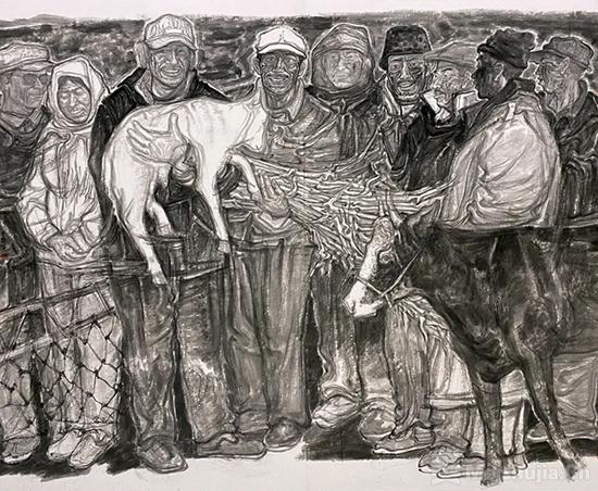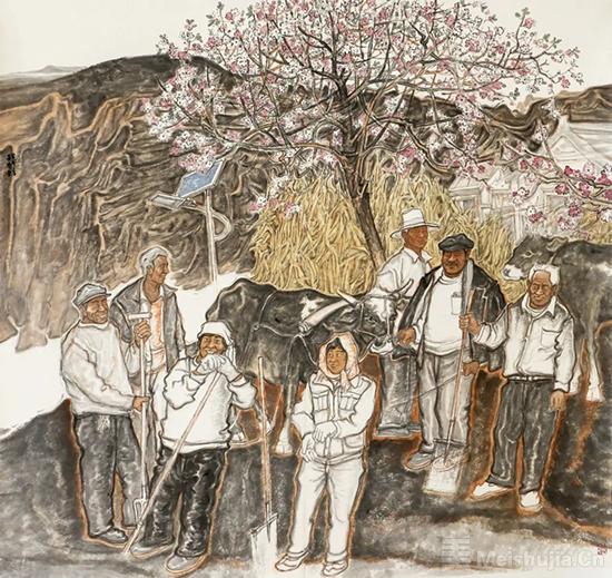 “古道放歌”作为画展主题,是画家用笔墨讴歌时代的心灵写照,凝聚着画家对西部土地的热爱,对故土的热切期待。他早期学习油画,后转入中国画的创作,这样一种探索历程,形成了中西融合的艺术思想,并自觉地将写实性的时代精神与传统写意精神相融合。其画面中粗粝的笔触与坚韧的质感,既是自然造化的馈赠,亦是艺术家内心精神气象的外化,开创出别具一格的个人艺术面貌,亦恰恰是巫卫东秉持“一人一品”艺术信念的实践写照。从而构建出他真诚而质朴的笔墨世界,也奠定了画家现实主义创作的学术地位和学术价值。