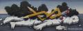 周松创作的另一核心在于“力量的可视化”,无论是《文明》中结构的弯折叠加,还是装置《暗能量》中以钢与铅笔构筑的垂直向上形态,皆在探索图像如何呈现“能量物质化”的过程。即便是《手相》《纽结》《枪》等尺幅较小的作品,也都体现了一种被解构的主体性,手、结、器物这些人经验中的可识别对象,在周松笔下转化为能量折叠、物态变形的容器。与此同时,周松进一步延伸了对“自然”概念的审视。在“超自然”系列中,他描绘的并非田园牧歌式的原初自然,而是经过技术彻底干预、改造甚至编撰后的合成景观。《奔月》不再讲述宏大历史叙事,《后自然》《新自然》中的自然亦不再是背景或客体,而是与科技、文化基因杂交共生的“后生命”形态。