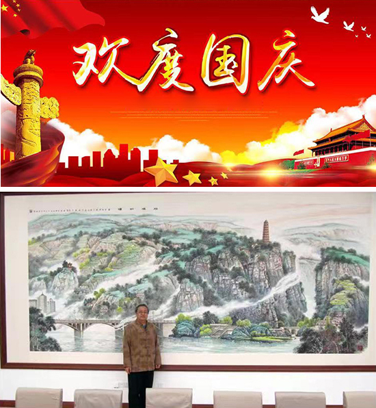 2007年国庆59周年之际,山水画《红旗渠胜境图》悬挂于天安门城楼贵宾厅。