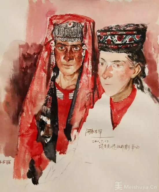 塔吉克新娘(水彩)54x48cm 2011年