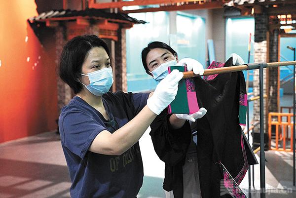 如果说文物保护实验室是让文物有能力“说话”的部门,那么陈列艺术部就是教会文物如何“说话”的部门。陈列艺术部主任梁亮同样是一名民族文化的巾帼守护者,在她眼里,部门的6名女性都是“十项全能”者,既能进行美术设计,又能撰写策展材料,既能联络沟通各部门单位企业,也能撸起袖子搬搬扛扛。