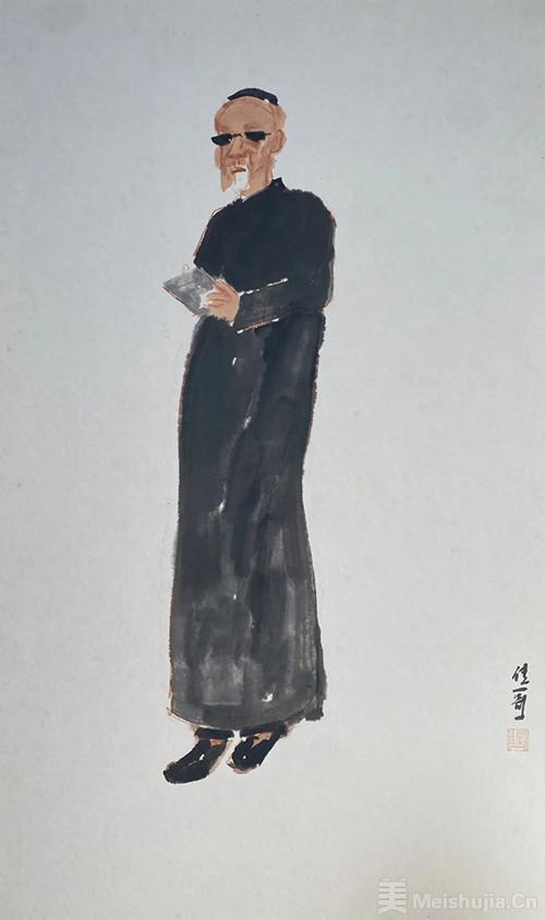 宣纸上的墨色晕开时,总让我想起老胶片显影的瞬间。那些民国文人的旧影在显影液里浮沉,在生宣的肌理上舒展,化作《旧影》系列里深浅不定的灰。水彩的透与水墨的滞在此相遇,像上个世纪三十年代老宅窗棂上的西洋玻璃,将斑驳的光影折射成历史的棱镜。