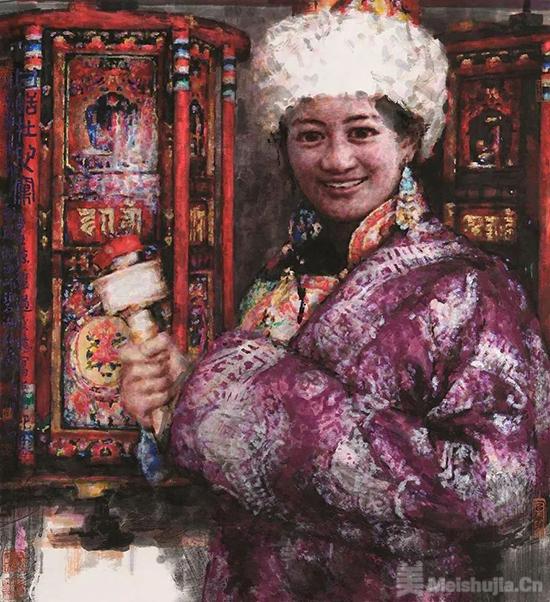 南海岩的成功就在于,他既不纠结什么是中国画,也不纠结其核心到底是什么,他只专注造像以及象外之意。凡能为此服务者皆可为我所用。这种不被传统禁锢的创新者,在今日看来依然是令人尊敬的。他最难能可贵的是以炉火纯青的写实技巧,通过对情节选择的象征隐喻和独特的人文关怀塑造了藏族同胞可感、可触、可对话的灵魂,而这些统统建立在他的敏锐观察和夜以继日的刻苦创作之上。南海岩的“象外之意”,是为我们展现那个神秘又神圣的环境中孕育的生命精神与真挚情感。