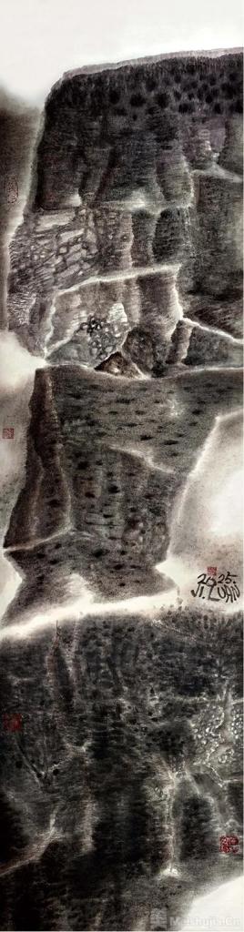 董其昌在《画禅室随笔》中有言:“以境界之奇怪论,则画不如山水;以笔墨之精妙论,则山水绝不如画”,四百多年前这位大师意识到山水语言独立运行的可能性,其后一代代画家在此方向上不断落实,在眼前山水和胸中丘壑的互证中抵达心中的理想境界,创立了一种又一种风格迥异的山水画。赵际滦深谙其中堂奥,他的山水艺术既是对时代语境的回应,更是与前贤的精神对话。在我的印象中,际滦兄不是一位善于推介自己的画家,他身在山西,主要艺术活动也在山西,其实放在全国山水画界来看,以其独特的个人语言风格来论,诚然应该引起足够的重视。