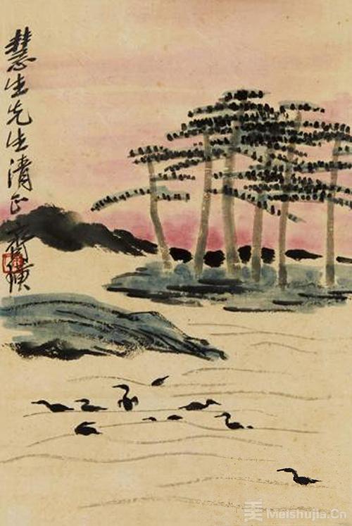 齐白石的《松溪禽趣》