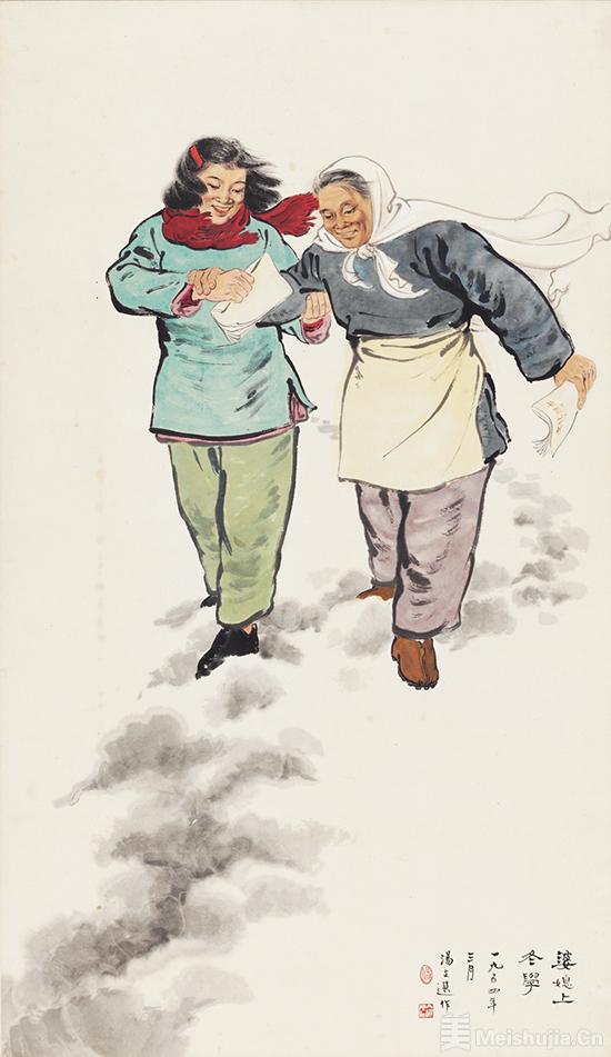 婆媳上冬学 (国画) 115×67厘米 1954年 汤文选 中国美术馆藏