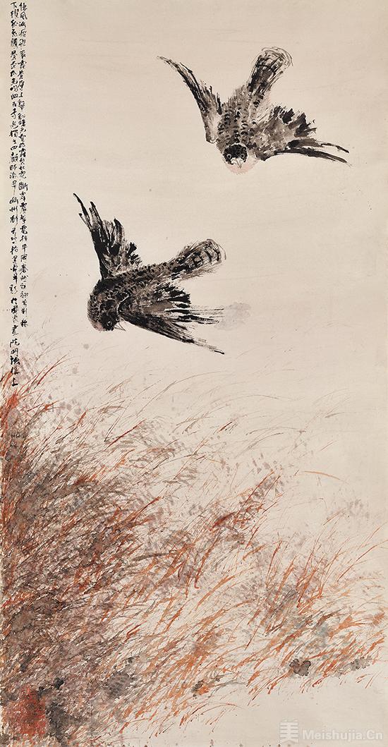 “此次展览不仅是艺术与文学的跨界对话,更是一场穿越千年的精神共振。这些创作不是简单的复古,而是将唐宋八大家的精神基因植入现代语境。”中国国家画院山水画所所长方向从柳宗元的《江雪》中看到画面之孤绝,感受到意境之深远,创作了山水画作品《独钓寒江雪》。作品以雪景为载体,整个天地被冰雪凝固,山峦如裹素缟,飞鸟绝迹,人烟尽灭。浩渺宇宙间只剩一江寒水蜿蜒,漫天飞雪无声坠落。一叶孤舟如墨点浮于水面,蓑衣斗笠的老者垂竿而坐。雪幕如帘,将他与尘世彻底隔绝。画面局部运用干笔皴擦,以表达荒寒之境,与灰色寒江形成鲜明的干湿对比。雪落不止,江流渐隐,意境幽远。