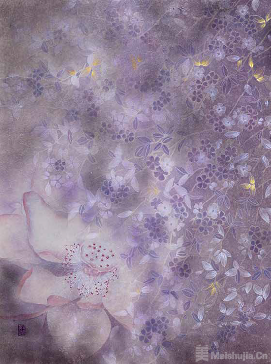 邢斯恬生于1972年,成长在美术世家,自小就有很好的艺术天分和感知力,中学毕业后,她考入西安美术学院,受益于设计学科的系统训练,能够精准把握画面构成、形式美感与视觉张力。她向导师李魁正先生学习现代没骨画法,在继承传统中国绘画以平光表现物象的同时,也借鉴西方绘画、浮雕和摄影艺术的表现手法,努力使画面更具有时代意味。