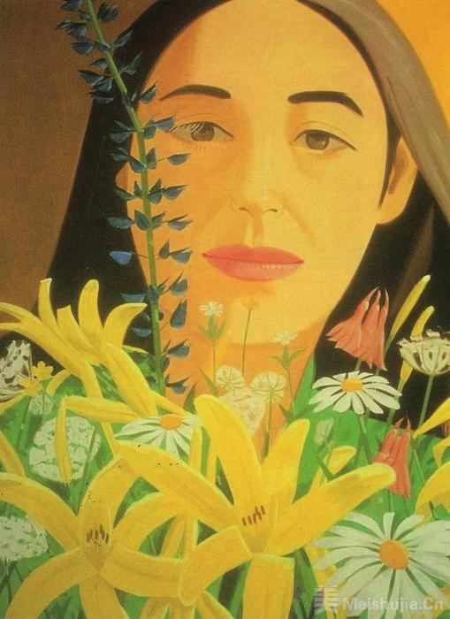 亚历克斯·卡茨(Alex Katz)1927年出生于纽约,曾先后在库珀联盟艺术学校(Cooper Union Art College)与缅因州的斯考希根绘画雕塑学院(Skowhegan School of Painting and Sculpture)学习艺术。卡茨是一位难以被归类的画家,有人曾认为他是“波普艺术家”或“美国现实主义者”,评论家普遍认为不能完全将他归入任何一类,但大多数人不可否认的是,他的作品以简洁的方式呈现了美国文化与风景的诸多方面。“他的绘画是关于美国的‘警句式图像’(epigrams about America)——独到而精练。”而他自己说:“我想做一幅能与他们所有人抗衡的画……想画正摆在我面前的东西。”