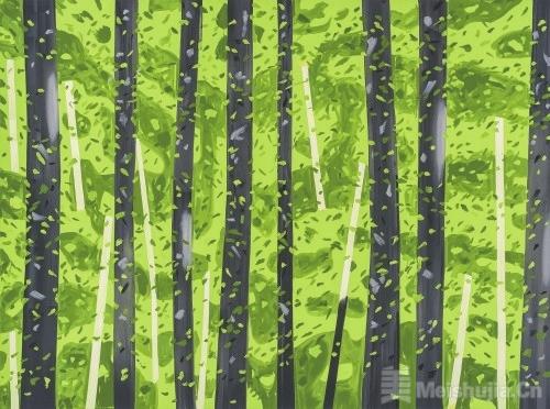 日本艺术对卡茨的创作也产生了影响,尤其是漆艺与屏风画。他创作于1968年的《沼泽枫树》中,树干与树叶轮廓清晰,背景被简化为大片单色,突出了主体树干,这一特点与日本漆画中“单色背景衬托主体形象”的表现手法相似。而1994年创作的《白杨树》(Poplars),则让人联想到长谷川等伯(Hasegawa Tōhaku)的《松林图屏风》。