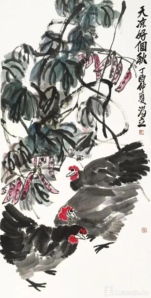 在这种文化背景下,汤氏父子坚定地提出了“既超越传统,又纯粹中国气派”的艺术主张,他们砥砺前行,勤奋耕耘,在当代中国大写意花鸟画领域里的开拓创新,成就斐然;其承前启后、继往开来的独特风范和时代担当,犹闻钟磬共振,遥感惊雷。