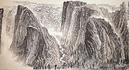 而展览所展出的《长征路上(六盘山)》则更鲜明地体现出李可染立志为祖国山河立传的艺术信念——“我画我家山”,致力于创作充满人文思想意识的新山水画。李庚介绍,20世纪60年代,李可染致力于“绘画语境的嬗变”,特别是1964年至1968年,他探索中国诗词与中国传统山水的结合,创作出来的作品在画界产生很大影响:“我还记得,这段时间中,他经常与贺敬之等文学家畅谈,有时候一谈就是一个下午,重点讨论作品中‘丰富之中的简’的处理方法。”