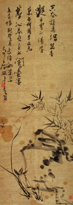 传统中国画,特别是文人画,深受中和思想的影响,总要求刚与柔、拙与巧、似与不似、实与虚、情与理、平与险的平衡与和谐。潘天寿恰恰反其道而行,要履险境,走极端,喜奇兀、强倔、壮伟甚至丑怪的造型、造境,寻找自己的艺术道路。此《兰石图》体现了潘天寿那种“用小构图不大幅”的创作原则,择其精华,去其芜杂,言简意赅,回味无穷,笔愈简而气愈壮,而且气盛、势旺、力足,近世罕有与匹者。