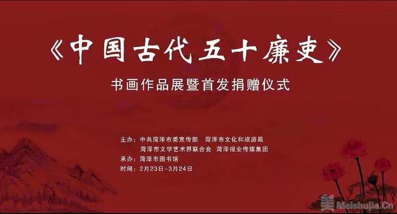 兹定于2月23日(正月十九周六)上午9:30在菏泽市图书馆一楼举办赵统斌诗、张剑萍书、于鲁俊绘中国古代五十廉吏书画展暨首发式,敬请光临。