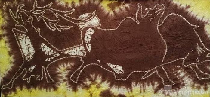 (3/5)《奔牛图》,国家级非遗传承人:段银开、州级扎染传承人:段树坤