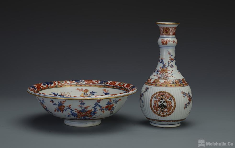 (1/5)清康熙青花矾红描金沃克家族纹章纹洗手瓶、洗手盆
