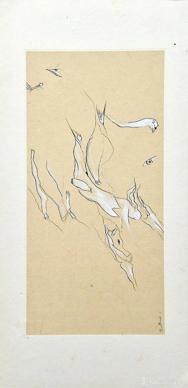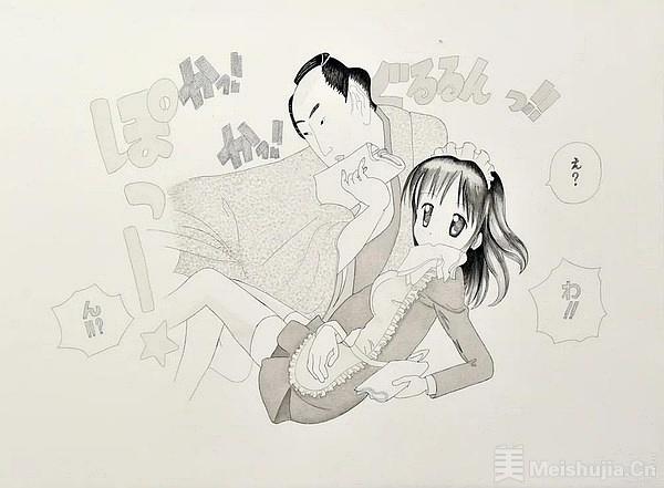 日本艺术家内田江美的作品则把浮世绘时代的Shunga构图和日本当代动漫人物混搭在一起,让人物在画面上超越时代,她惯常使用的炭笔线条掩盖住Shunga的纠缠。
