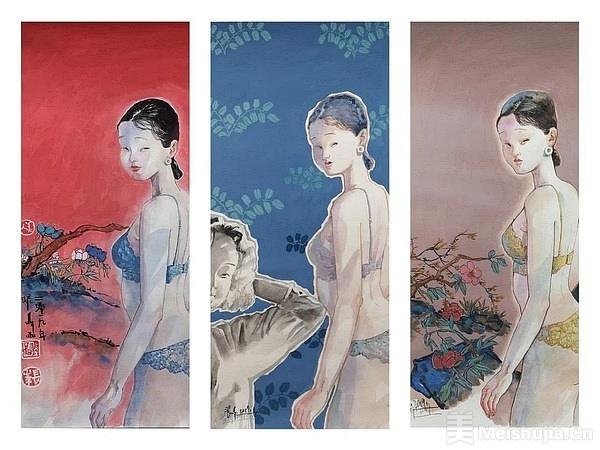 裴晶的作品在戏剧性、舞台式的描绘中,让人物的暴露富有波普和逆时代性。「部分欲动」和「刺激」来自身体的「丰乳肥臂」。周边环境描绘则是传统和唯美的,那反差也是作品的醍醐味。