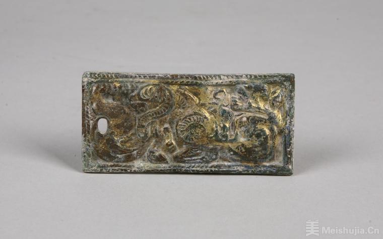 (5/10)鎏金虎噬羊铜带扣,西汉,重庆巫山小三峡水泥厂出