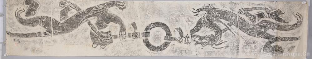 (10/10)东汉青龙白虎争璧画像石拓片,现代