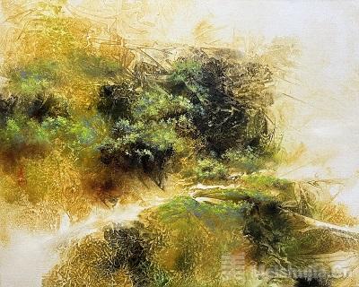 [离尘]对我而言是名词也是动词;看似意指远离喧嚣、俗尘,反向而言却是说明自己所寻得的归途。以此做为展出主题用以表述这阵子在生活和创作上的心境。自2019年开始风景画的表现由印象派式转而写意,对于喜爱风景画题材的我来说,找到了新颖的风景画表现方式;而2020年之后的无相山水系列风格更体现了我内心所嚮往的依归,亲近大自然的当下深刻体会到大自然的壮阔与变化莫测,并牵引到自己内心的感触和想法,即人同自然一样无常,凡事皆有最适合的安排。因此,在生活上和创作上取得平衡,便是自己一直依循的方向。
