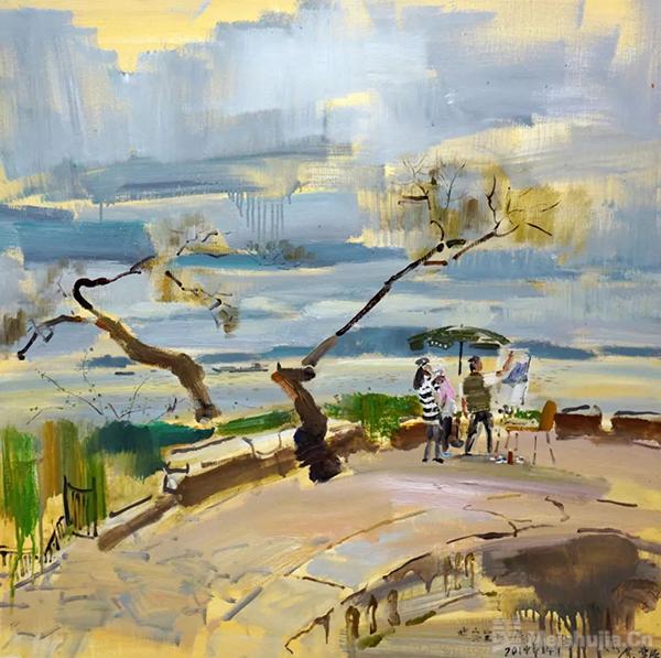 在个人的艺术创作上,孙建平先生坚持探索中西融合的绘画语言,他深谙西方艺术转型时期的思潮风雨,所以能更透彻地思考出中国现代艺术应有的文化取向,并于中西两个领域中同时投以理论与实践的深入钻研。在恩师秦征、张世范、赵无极等先生的影响下,他被激发出的印刻在血脉中的文化自觉和文化自信,让他明确了自身构建油画本土化语言体系的创作道路。多年来,他奔走于山川田野,在“写生”中“写意”“写心”,他从本民族的优秀传统中汲取营养,磨砺自己的艺术语言,一心完善一种表现中国风貌的写意油画。最终,孙建平先生形成了一种注重气韵、泼洒淋漓且具有浓郁书写式和笔意性的绘画风格。