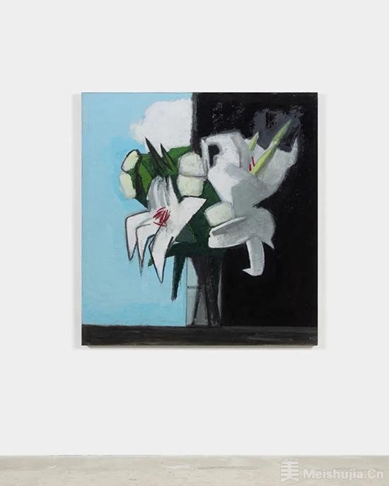 刘晓辉曾在十年前检视花卉和自然等主题,以月季等花卉为题创作纸本绘画作品,并在2021年重新关注花卉主题,创作了一系列以朴素温和的木槿为题的画作。对于刘晓辉来说,如劳作一般长期持续的绘画实践在很大程度上影响了他在近年处理花卉型态及色彩的方式,也促使其将花卉视作是自然、不造作、本真姿态的象征——绘画笔触的姿态应效仿或映照花卉的自然状态。出现在“香港的花”展览中的花卉植物包括百合、红白两色木槿、绣球和蔷薇等;刘晓辉在不同规模的画面中反复检视植物的型态特质,通过色彩反差和富有秩序感的空间安排描绘花朵貌似恬静却又富有强烈生命力和个性的图景。