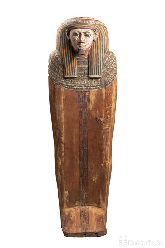 古埃及是一个以「死亡」闻名于世的文明,他们将河流、死亡、生命连结在一起,形成了独特的信仰。本次展览的重点展品包括分属于一对父子的两件木棺,棺盖上可以看到纸莎草、莲花和雏菊的花纹,献给神灵的象形文字铭文等装饰。