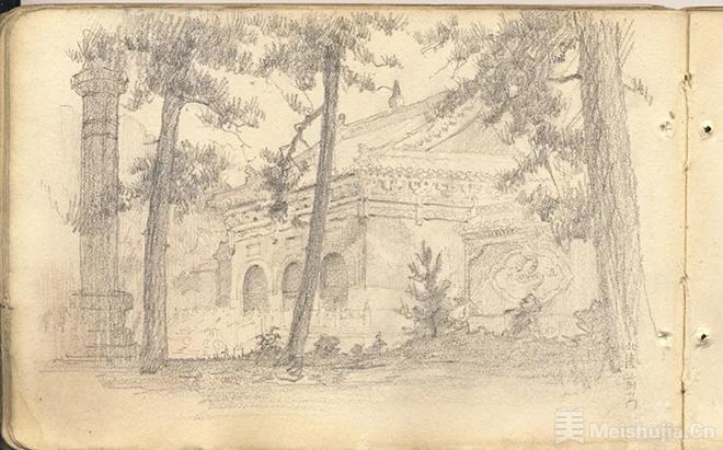 (4/6)沈阳北陵测稿及速写,梁思成,1929-1931年,复制品,中国营造学社纪念馆藏