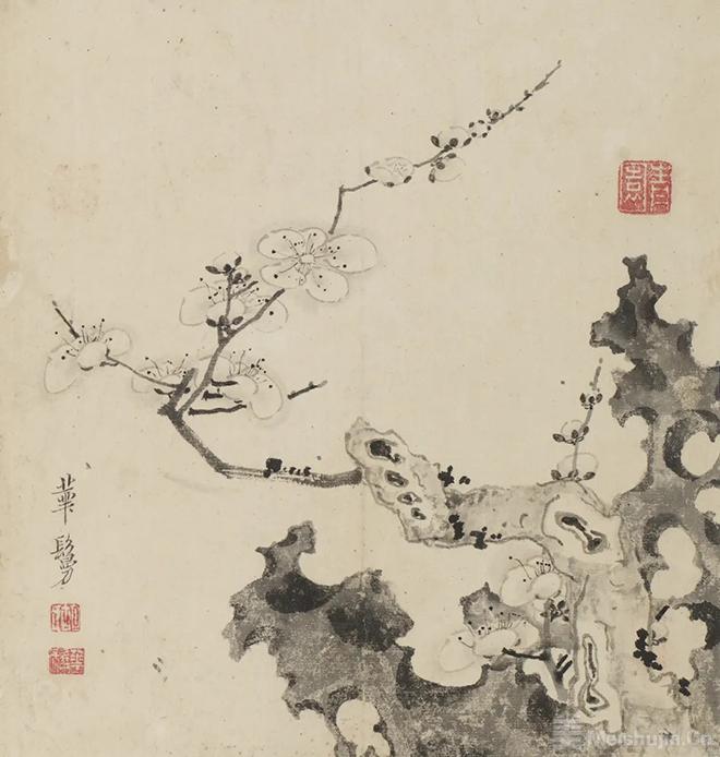 (2/6)《山水梅花合册》,陈洪绶、胡华鬘,明代,苏州博物馆藏