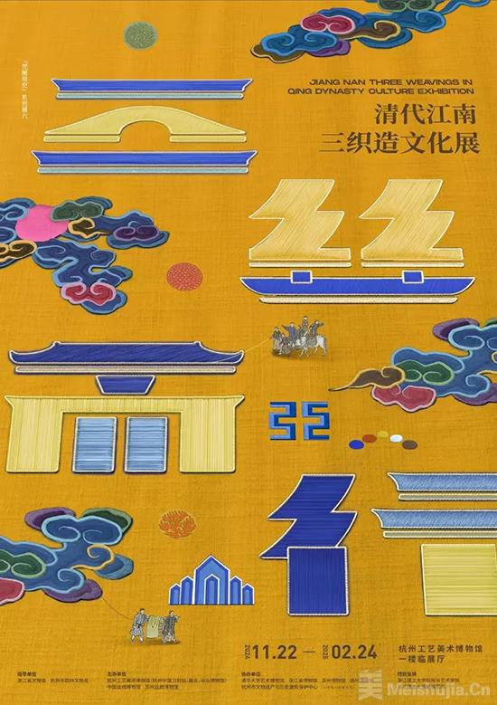 本次展览由杭州工艺美术博物馆联合中国丝绸博物馆、苏州丝绸博物馆共同主办,分为「何以织造」「织彩斑斓」「不止织造」「织韵新尚」四个单元,共展出匹料、织成、服饰、诰敕、奏折、碑刻、拓片、玉器、贡墨、贡纸等139件(套)文物及非遗展品,追溯江南三织造的历史源流,展现其织造技艺、花色品种、文化内涵与角色职能,彰显非遗技艺与现代传承。
