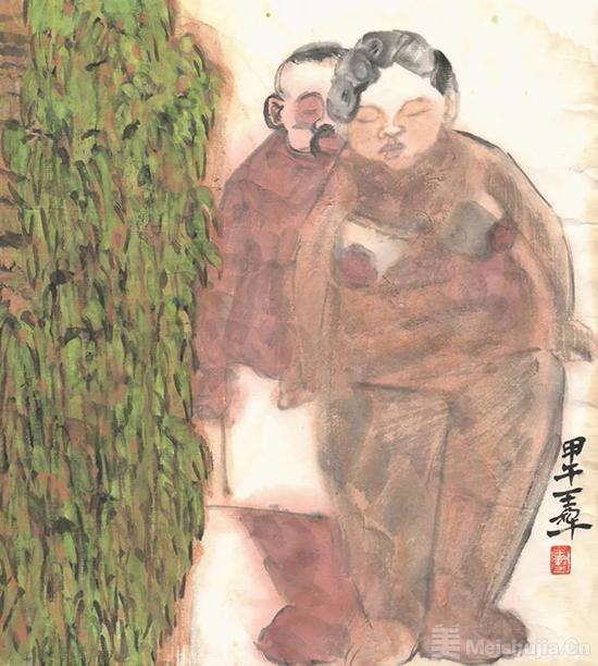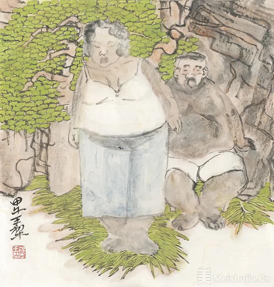 王犁,用他自己的话说就是“一个在千岛湖边长大的野孩子”,从小喜欢画画,但学画过程坎坷,先是考过两次美院附中,又考过一次艺校,也未果;后来又花了三年时间考大学,1992年终于考上中国美术学院中国画系人物专业。从此湖里的一尾小鱼算是跃上了龙门。而且年轻时的王犁本就长得有些许的“异相”:大脑袋、细脖子、眼小聚光、亲和幽默,仿佛八大山人笔下斜着眼的鲶鱼。