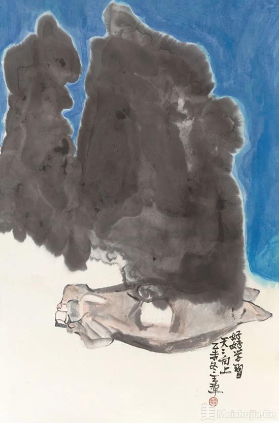 王犁在上大学期间就是一个文艺青年,喜欢阅读,且涉猎范围很广,他的阅读习惯是把有兴趣的书先买下来再慢慢看。王犁的书架上,除了专业画册,还有小说、诗歌、传记、艺评等。书越买越多,自然也就越看越多,书架上摆满了就延伸到书桌上,书桌上堆满了就蔓延到椅子上、床上,甚至地板上,再继续多到屋子里都摆不下了,王犁就开始往外送书,把不同类型的书籍送给不同的朋友。王犁还爱逛旧书店,看到喜欢的书,想买,但又担心家里无处可放,于是就买下以后直接邮寄送出。本人就有幸被送过几次,其中还有难得的台湾版本。王犁看的书多了,就慢慢开始写;写的书多了,就慢慢开始编。他2008年出版文集《书桌画案》(四川美术出版社),2015年出版文集《排岭的天空》(广西师范大学出版社),2009年主编《豹卿写趣》(中国美术学院出版社),2013年主编《尉晓榕和他的学生》(浙江人民美术出版社),2014年主编《山明笔谈》(中国美术学院出版社),2016年主编《洪勋—作品、访谈、年谱》(广西美术出版社)。前两天在微信上又看到“艺术前沿”栏目对王犁的采访,标题是“在理论研究与绘画实践中找到一种平衡”。视频里侃侃而谈的那张文艺老青年的脸上,除了多了几条褶皱之外,还多出几分书卷的味道。