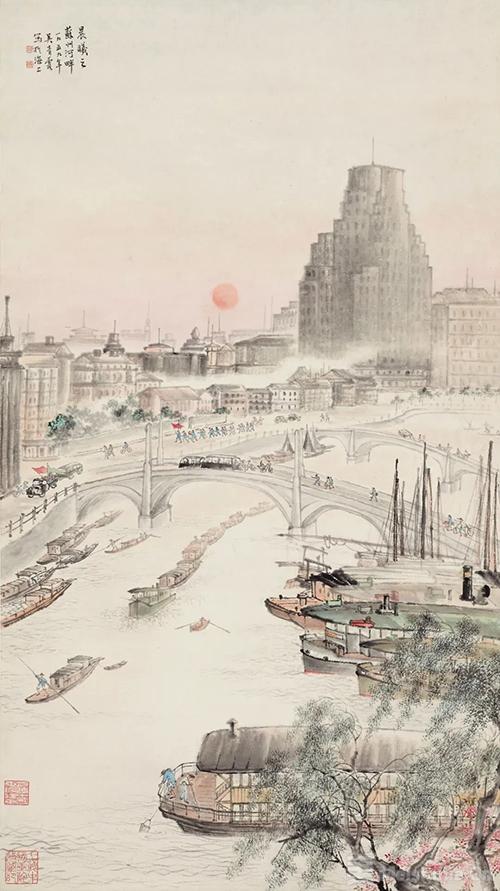 (4/6)《苏州河晨曦》,吴青霞,纸本设色,1959年
