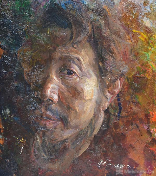 这是我们从当代艺术家刘亚明的《2021自画像8》(2021)中的所看所见。那本是一个充满生机、盼望的季节,但他的这个系列“自画像”却由始至终传递出一种绝望不屈的生命情感。其目光,似乎直接穿越了创世之初的“渊面黑暗”、把人引向对于永恒之光的祈盼。