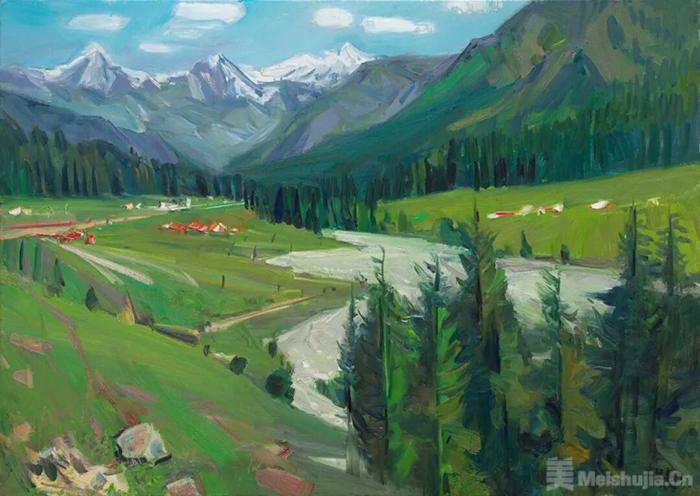 范迪安先生热爱新疆,关心新时代新疆的全面发展,积极投身“文化润疆”事业,多次率领全国油画名家参加“和美新疆——中国油画名家采风创作活动",为新疆美术的推广传播、推动新疆油画家与全国油画界的交流付出很大心力,身体力行地以艺术讲好新时代的新疆故事和中国故事。他饱含对新疆的深情,以主题性写生的方式踏访天山南北、祖国边陲,悉心体察和表现新疆独特的自然景观、丰厚的人文历史和中国式现代化的新疆篇章,作品浑然大气,充满写生的“现场感”和生动性,以写意抒情的笔调构成讴歌大美新疆的视觉画卷。