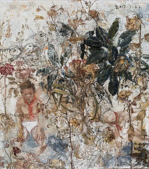 (2/5)《鸟语花香no.1》,80cm x 70cm,布面油画,2017年