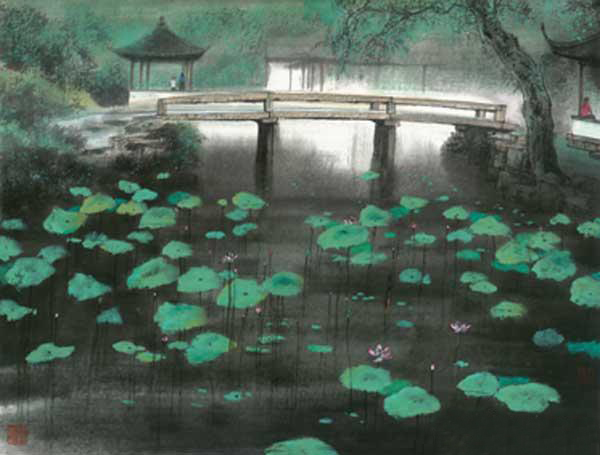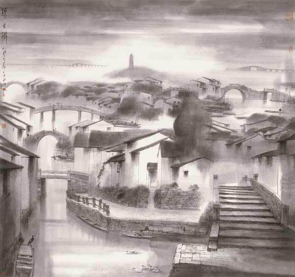 杨明义从小在江南长大,家乡的小桥流水是他记忆深处难以磨灭的印记。他以这美丽家乡作为艺术创作的源泉,那被薄雾遮掩或沐浴在满月的银光下的小桥、流水、人家、小船——这些印象江南画里的元素,在他那如诗的画面中氤氲开去,既晕染着那浓浓的说不明理不清抓不住却也抹不去的乡情,又勾勒出几丝淡淡的莫名的哀愁,更营构起那水气充盈得似乎都拧得出水来的水墨江南梦……长大后,在他的求艺生涯中,也曾经先后出现过级座重要的“桥梁”。 1969年,他参与南京长江大桥公路桥作装饰设计,七幅大桥栏杆装饰图案全部被采用;1989年,他在纽约的凯萝蒂•赫尔画廊举办画展,当时以一个赴美留学生和中国艺术家的双重身份,致信美国总统布什先生并寄赠了一张中国水墨画《月夜古桥》。数天后,布什总统发来了亲笔感谢信,并寄语他“做中美文化交流的桥梁”; 2006年,杨明义从北京返回苏州,内心深处有个强烈冲动——追寻从儿时就积攒在心中的“水乡墨梦”,完成起意于两年前的“江南百桥图”。在他看来,桥的功能是沟通往来,但它更是一种有哲理的建筑,它能让不同文化背景、不同思维方式的人们互通有无。