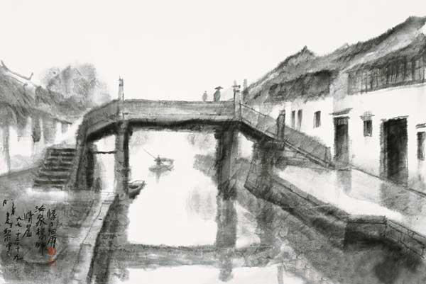 杨明义画百桥,几乎涵盖了江南所有类型的桥,一桥一世界,一画一天地,各具特色,每一座桥的特点与魅力都被他“挖掘”而出。今日的江南早已不是当年文人墨客笔下烟雨杏花的模样,现代化和工业文明不断地改变着她柔软的面貌,杨明义用画笔塑造记忆中的旧时江南之际,带着几分无奈与惆怅。他的画在呼唤着人们去寻找、触摸、认知、欣赏逐渐被现代文明掩盖的江南气息。一个成功的艺术家,应当在自己的土壤里埋下深厚的根基,江南便是杨明义绘画的土壤,他从中撷取创作的灵感,并不断探索和挖掘,将土壤里的精华积淀融入自己的作品。杨明义作“百桥图”不仅仅是将眼前所见用艺术的形式表现出来,更是意在保存江南的历史文化。这些桥,每一座都有自己的历史和故事,但也许明天就会因为种种缘故从我们的眼前消失,所以,“百桥图”承载的不仅仅是绘画艺术,它承载的,或许还有我们赖以生存的精神动力和苦苦追求但却日渐消弭的文化记忆。