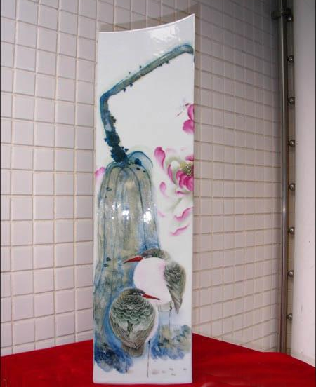 陶瓷艺术作品,与在纸绢上作画不同。因为后者笔墨落纸(绢)即成画面;而前者在瓷胎(坯)上所作的画面,成功与否,还要接受火的考验。因此,陶瓷装饰画家,不仅要具有绘画家的高超绘画表现能力,而且还要熟悉陶瓷釉料,颜料及其在火中烧成的理化性能。赖宗有先生为了攻克陶瓷绘画,不仅悉心研究绘画自身的技法、技能,而且在陶瓷工艺上下过一番功夫:陶瓷造型设计、烧成、瓷器彩绘学、瓷器颜料学、色釉工艺等,均有研究;陶瓷装饰的各种技法,如粉彩、占彩、新彩、青花、色釉装饰,都有深刻的造诣,特别是对新彩和高温颜色釉专研颇深,艺术造诣更著,具有当代陶瓷一家之风范,为众人收藏之首选。