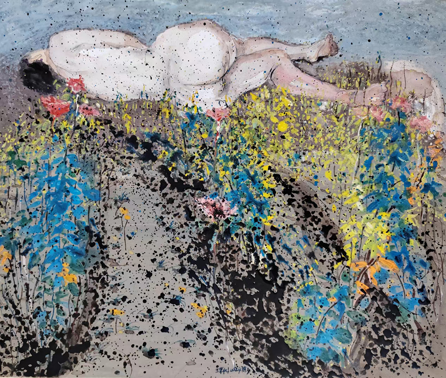 “野玫瑰”亚麻布丙烯 50x40cm 2023年 王荣松新作 RMB:6万