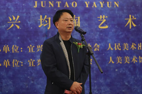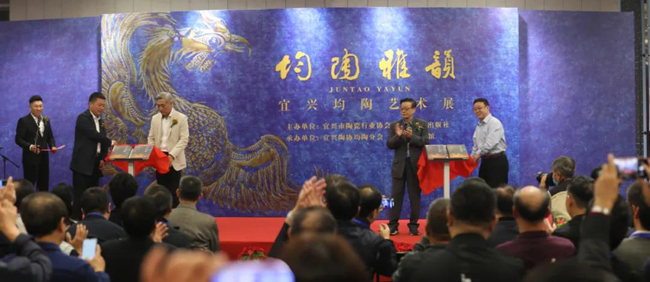 文化和旅游部艺术发展中心主任刘占文先生、中国美术出版总社工会主席、品牌中心主任曲刚先生,宜兴市丁蜀镇党委书记陈雪峰先生,中国工艺美术大师、中国陶瓷艺术大师鲍志强为画册《均陶雅韵》首发揭幕。