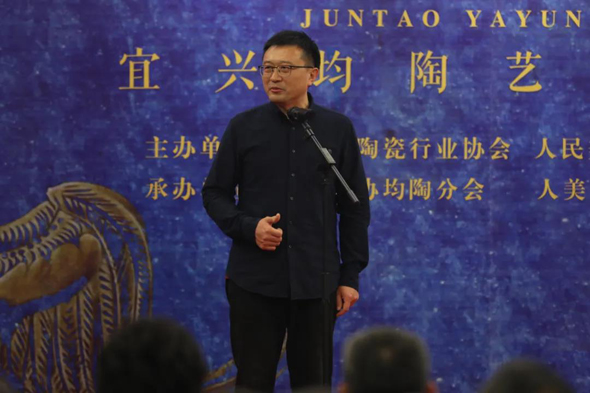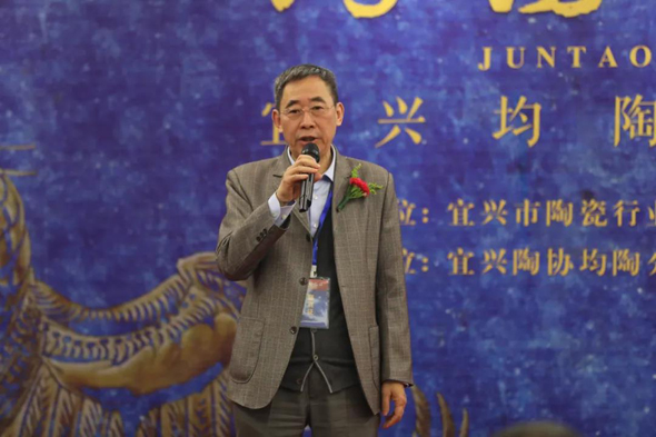宜兴市陶协副会长、均陶分会名誉会长鲍建生先生简要介绍本次均陶艺术展